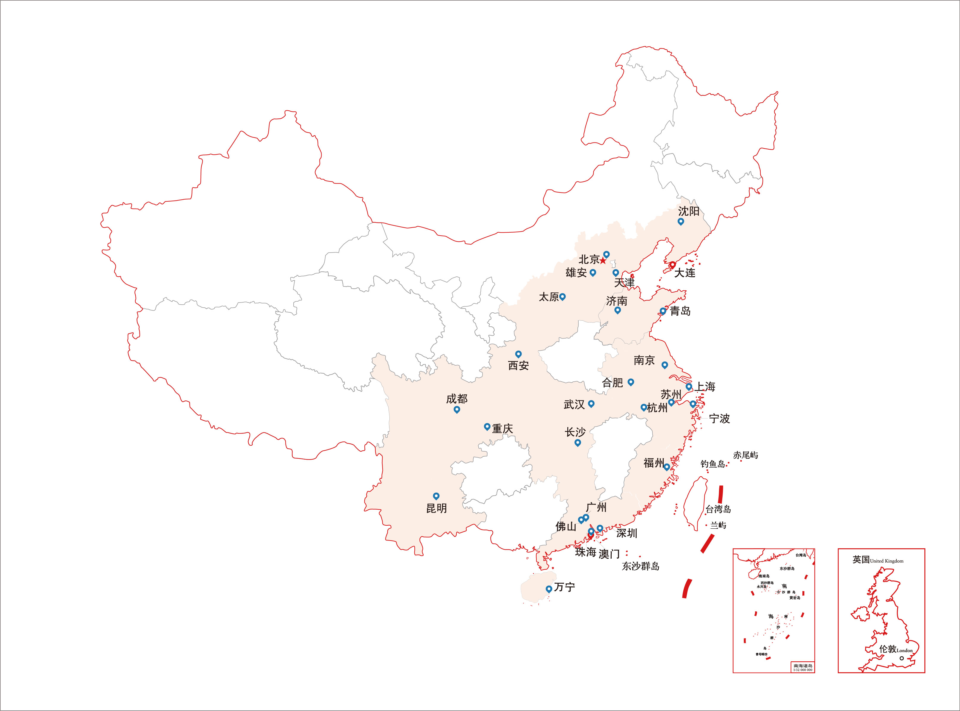目前中海商业地产项目遍布香港、伦敦、北京、上海、深圳、广州、南京、沈阳、成都、杭州、天津、济南、珠海、西安、重庆、苏州、武汉、佛山、福州、太原等全球30余个经济活跃城市,涵盖69座中海系甲级写字楼、33座购物中心、27家长租公、14家星级酒店和高尔夫球场。商业管理总面积近1000万平方米。